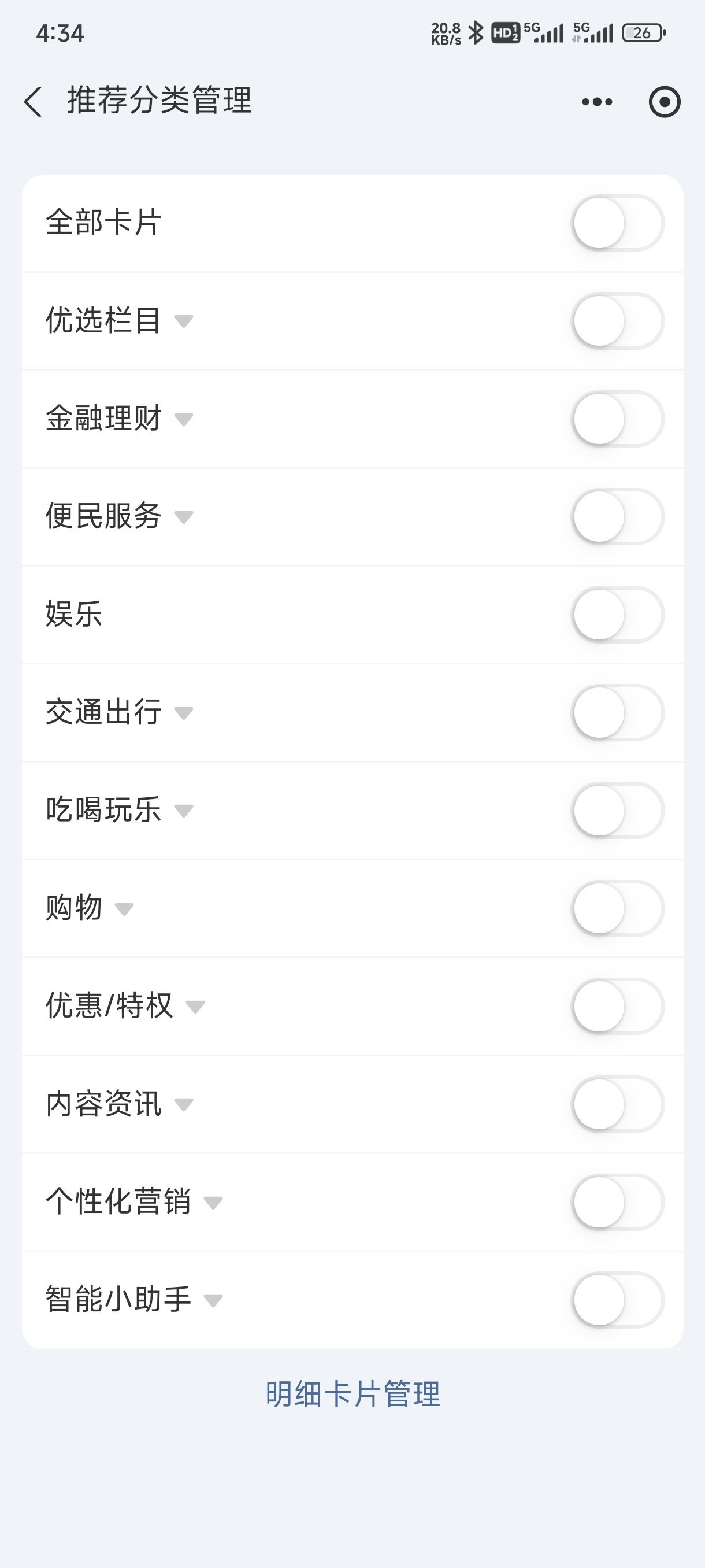 3.進入推薦卡片頁面,將所有卡片給關閉。
