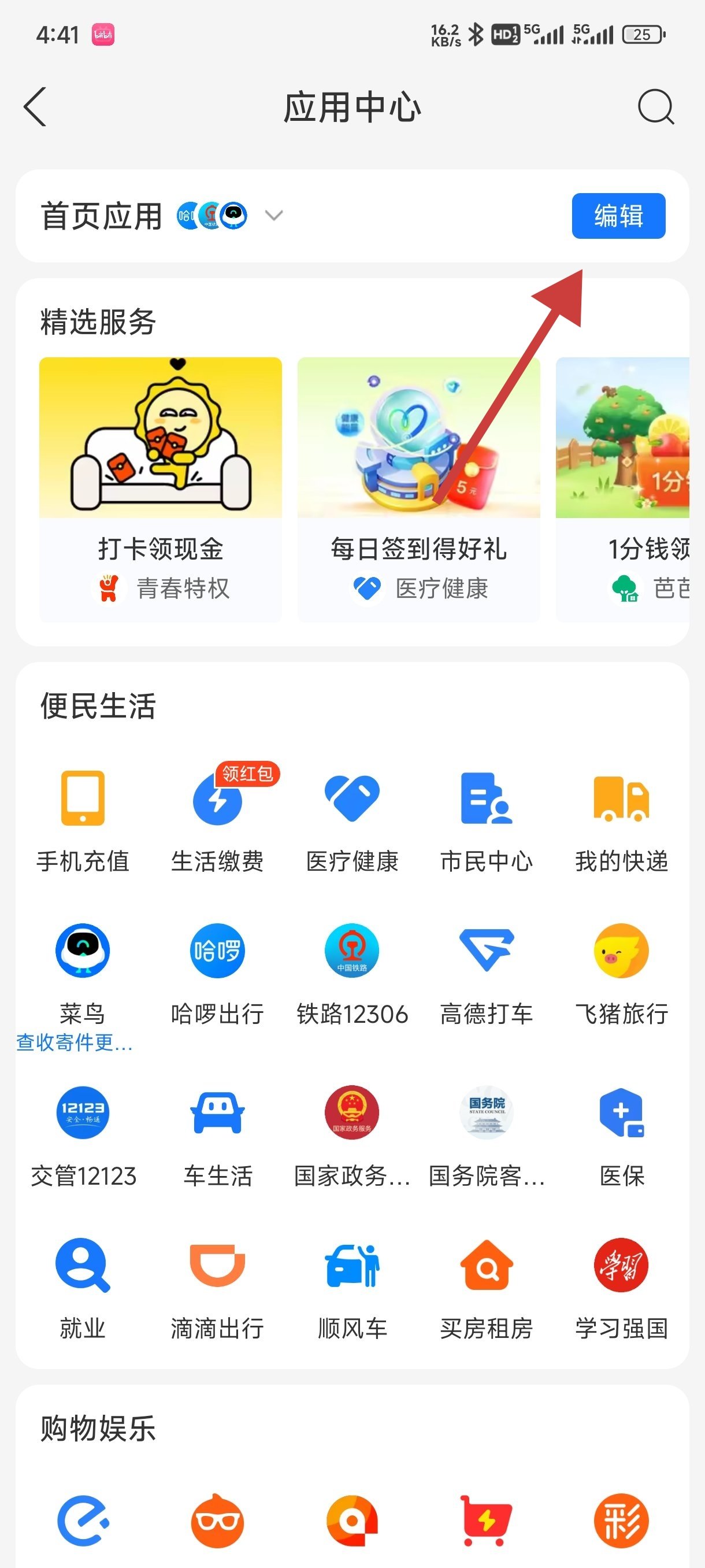 4.回到首頁,拓展功能區內在點擊更多,進入編輯,去除不需要使用的軟件,剩三個即可。