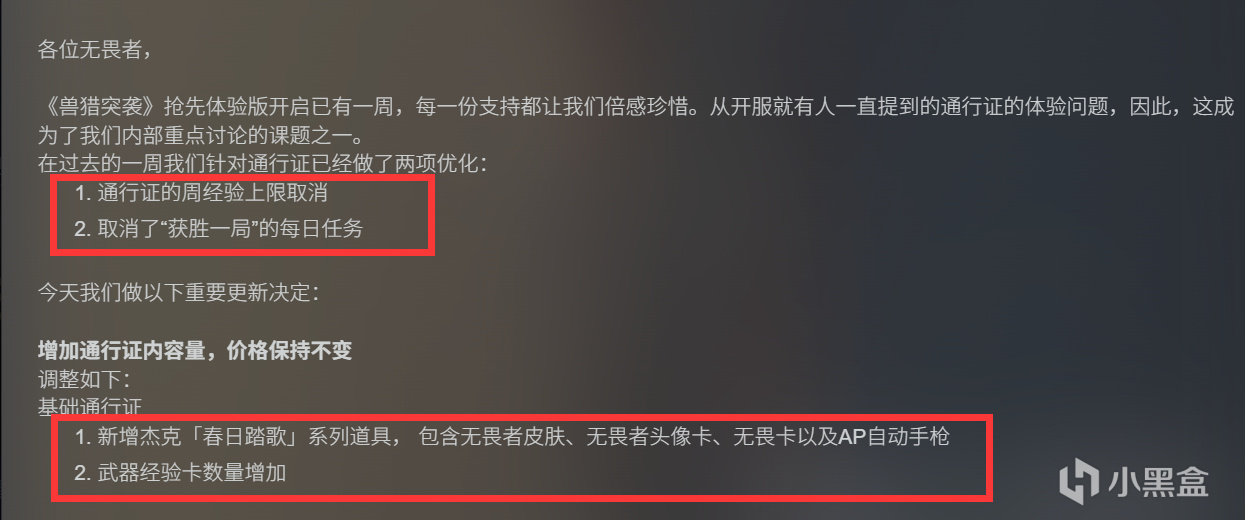 游戏是买断制,免费解锁所有角色武器和基础通行证。高级通行证需要付费购买。制作组也很听劝,已经取消了通行证周经验上限和“获胜一局”的每日任务,同时增加了基础通行证的奖励。