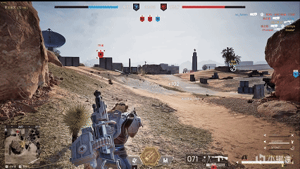 40名玩家分为两方,4人组成小队。倒地之后,可以等待队友扶,也可以自杀快速复活。死亡后消耗兵力复活重新部署到队友/据点处,游戏节奏更快。