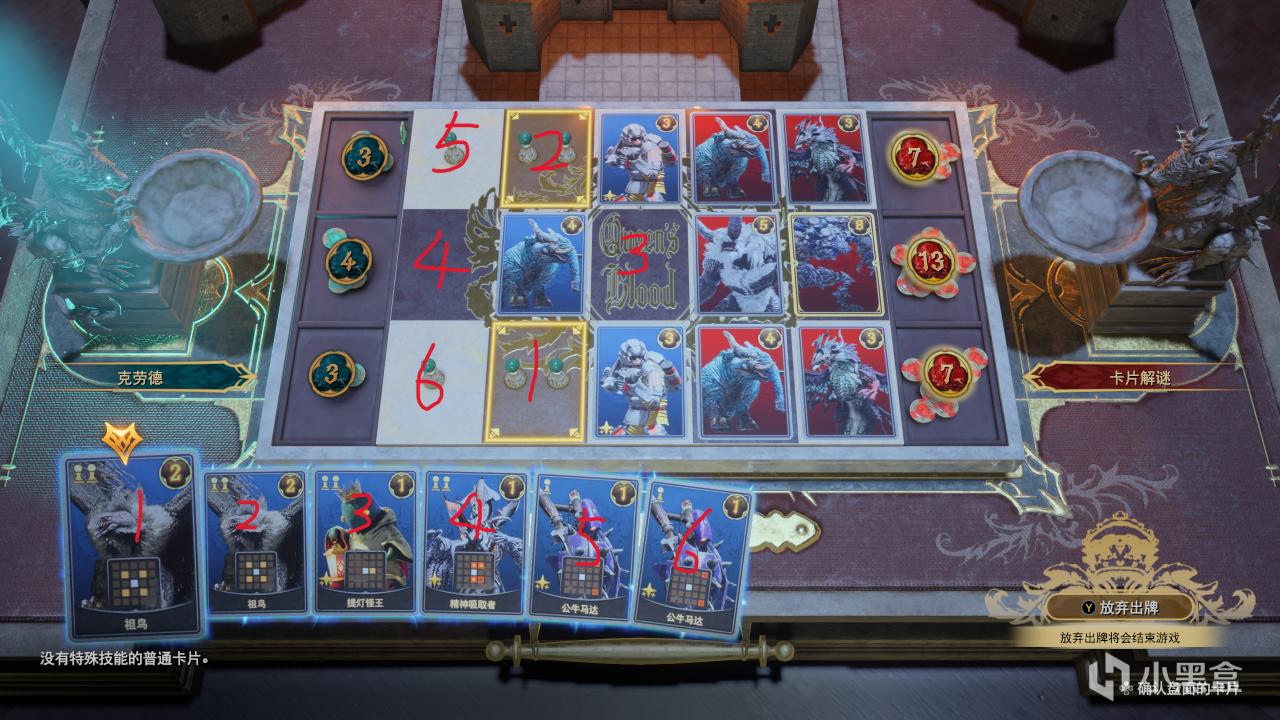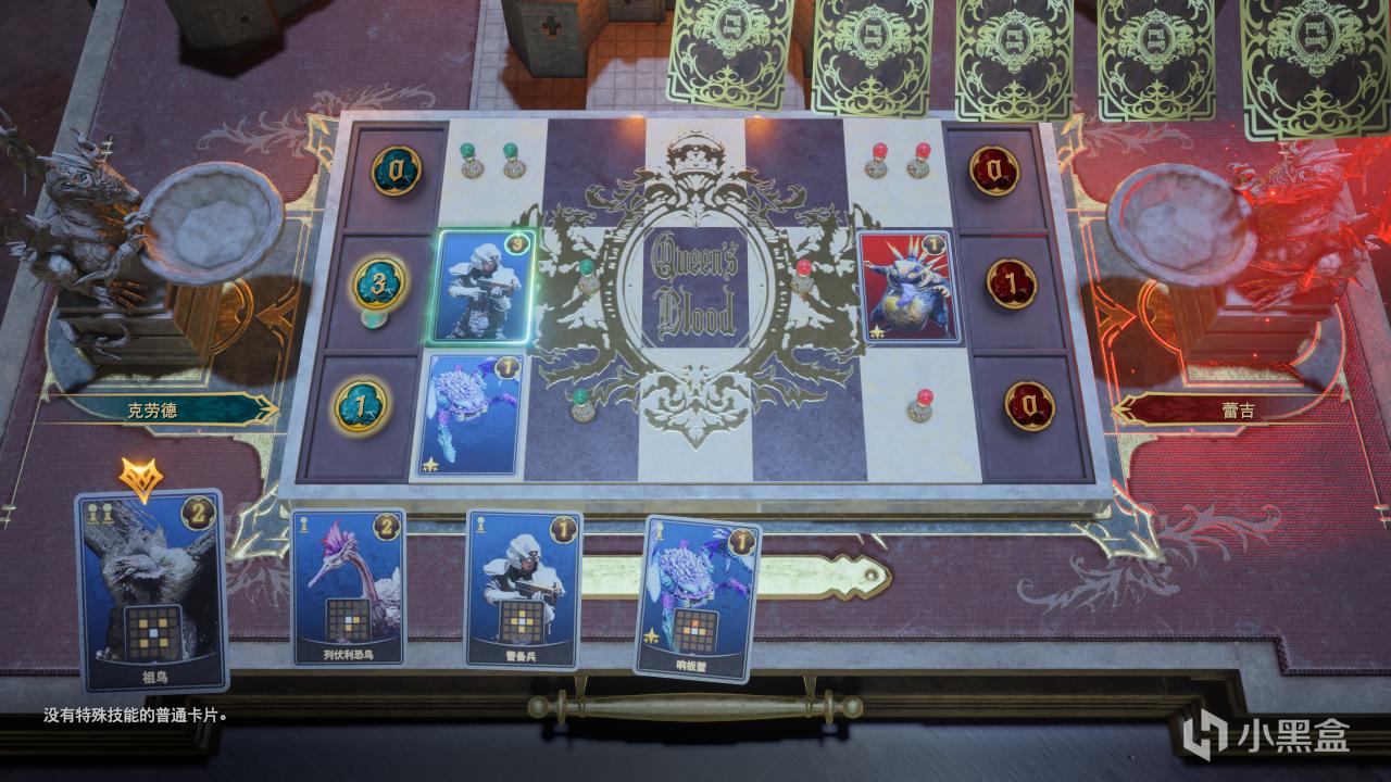 tips4:见招拆招,如果对面第二张牌放在了中间,那么我们第三张牌就要根据当前的局势同样放在中间,如果对面没有继续放在中间,那么我们就按照PS3说的上中下平均分布拓展自己的地盘,可以理解为前中期女王之血就是一个抢格子的游戏,到了中后期才会有可以覆盖棋盘上的特殊卡牌,不过这个时期我们就是烧牌流了这点后面再说。