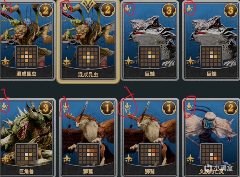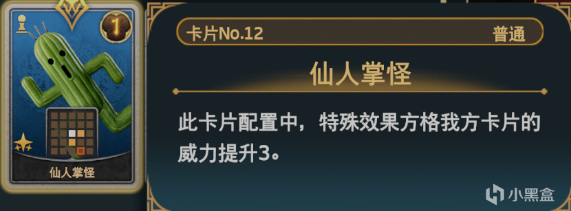 仙人掌怪:除非特殊情况通常会将牌放在第一行,他会增加红色格子的卡牌威力(举个例子如果放在第一行的第一格,那么就会增加第三行第二格的卡牌威力。)