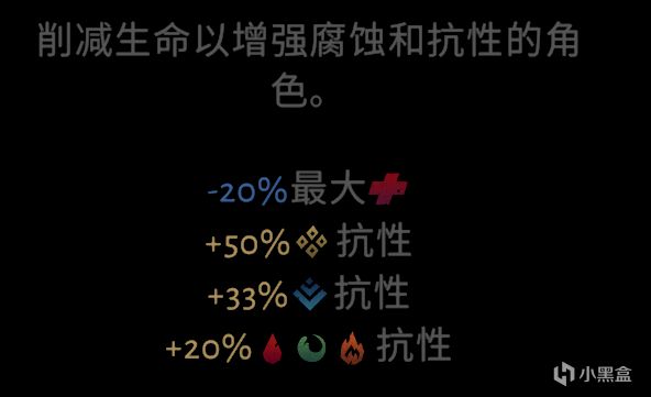 儘管削了20%生命,但抗性全範圍加強,技能方面單毒雙毒有了33%腐蝕抗性穿透。