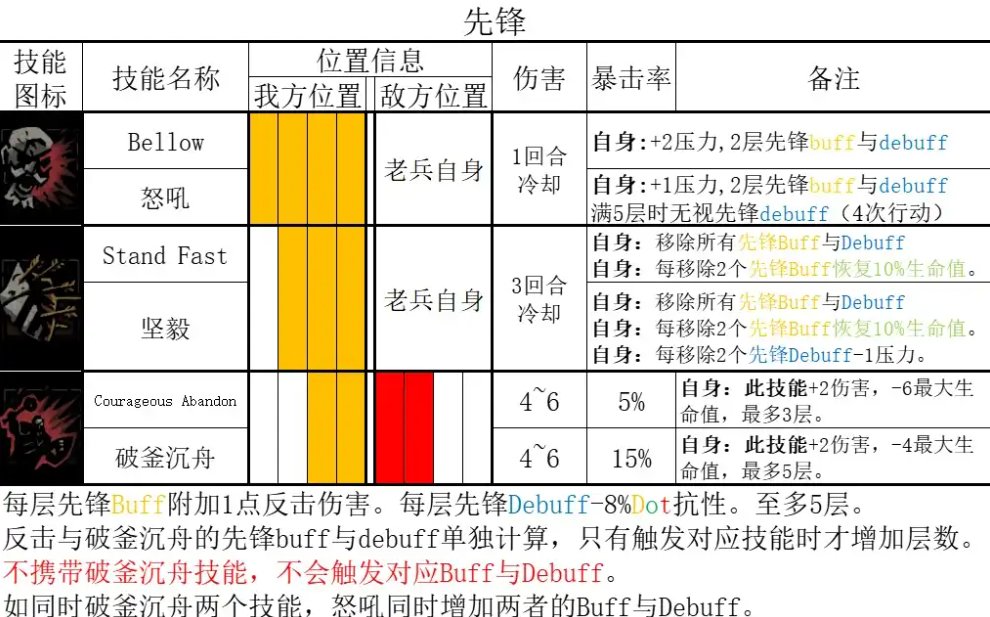 曾經的先鋒+20%血,+粉碎(50%)和反擊(25%)傷害,集主T和直傷副C於一體,代價僅僅是-20%dot抗性。現在嘛……一眼難盡,傷害不是沒有,卻需要多回合啓動,啓動完了傷害高了血量和抗性又沒了。