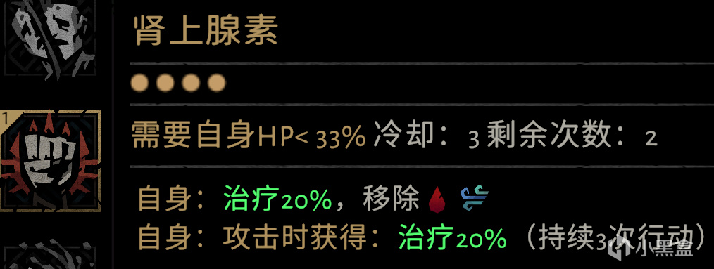 惡女摸一次反思聖地就能解鎖神技腎上腺素,自回解dot去力竭,後續3次行動攻擊時獲得治療20%。注意,這裏是攻擊一個目標回20%,所以你用野蠻咆哮吼到2個敵人就是回40%,用一次鐵蒺藜能直接回滿。