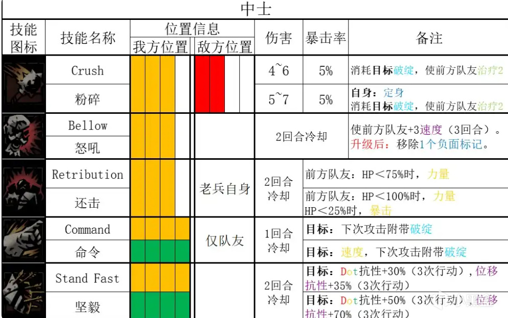 激勵一次性能降4點壓力,還給盾,含金量無需多言,三個正經解壓技能之一。盾擊前進1給小暈,粉碎打三號位打標回血,堅守陣線前進3定身,戰術後撤後撤1上標,各有特點,各有就業空間。