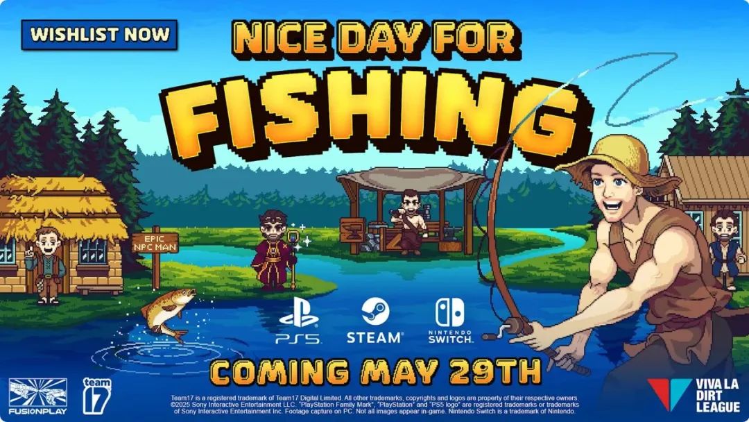 钓鱼主题冒险游戏《钓鱼哥的奇妙冒险/Nice Day for Fishing》5月29日推出。