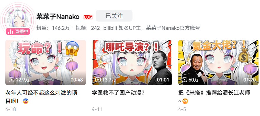 還有一些沒講到的也請見諒,V圈人實在太多了。二次元濃度高的可以看夢音茶糯,圍棋可以看雪糕,音樂可以看早稻嘰,蘭音(這個可能不算v,只是套皮)
