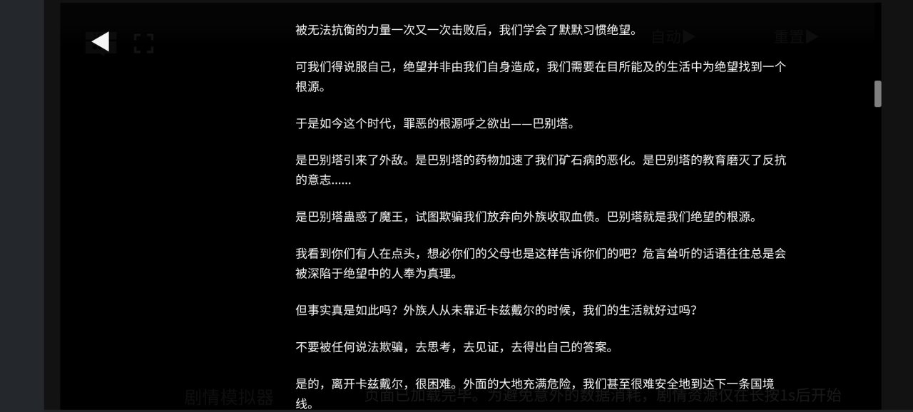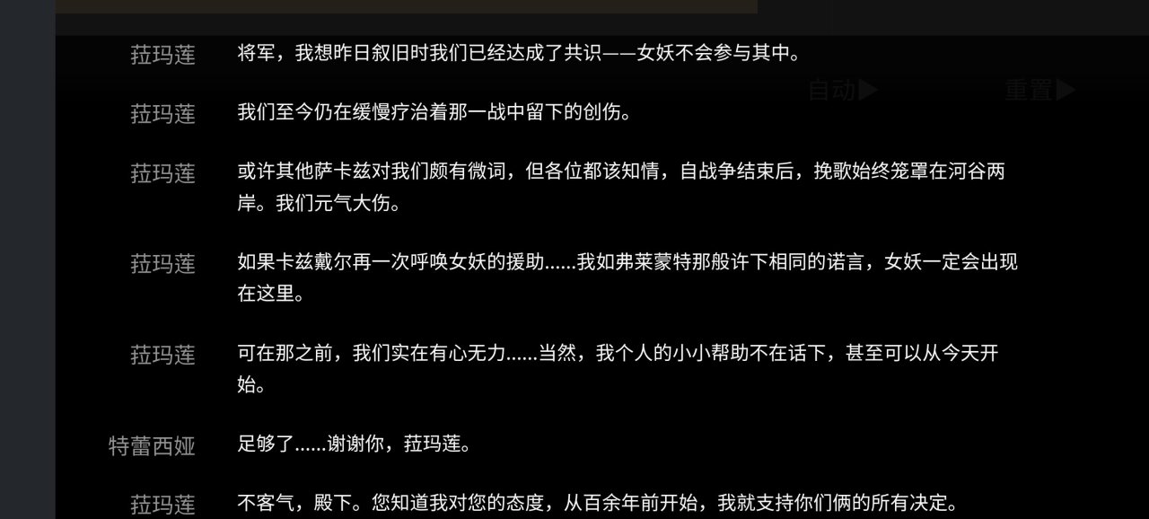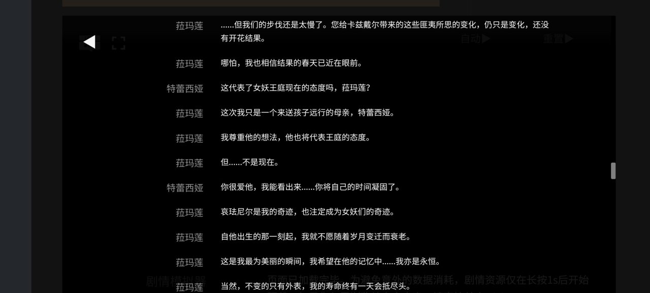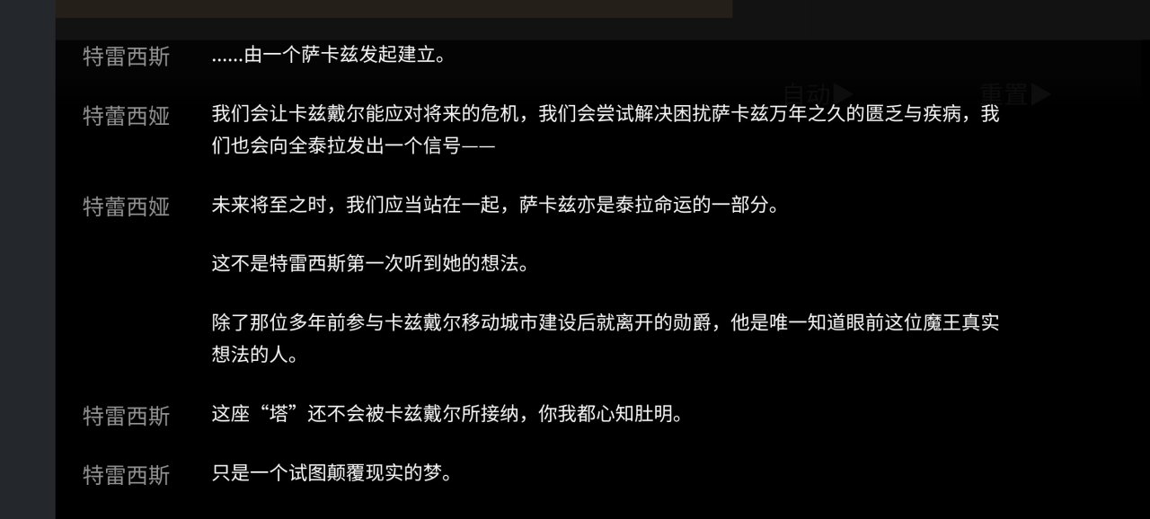 然後皇女和皇子開始聊天,大概講了一下戰局,對薩卡茲的未來感到憂心忡忡,然後皇女決心要對薩卡茲的政體進行一個快進,直接跳過五千年,從部落制快進到共和完成中央集權。