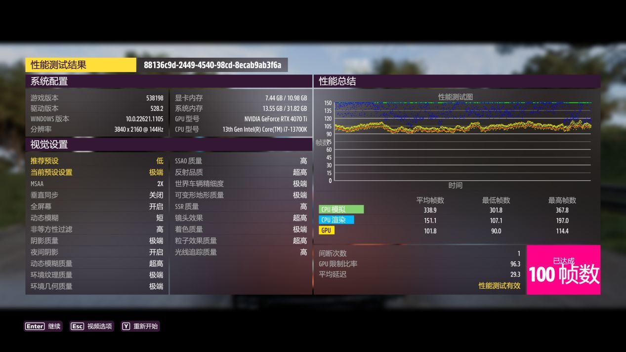 4K分辨率最高畫質平均109幀,2K分辨率最高畫質平均211幀