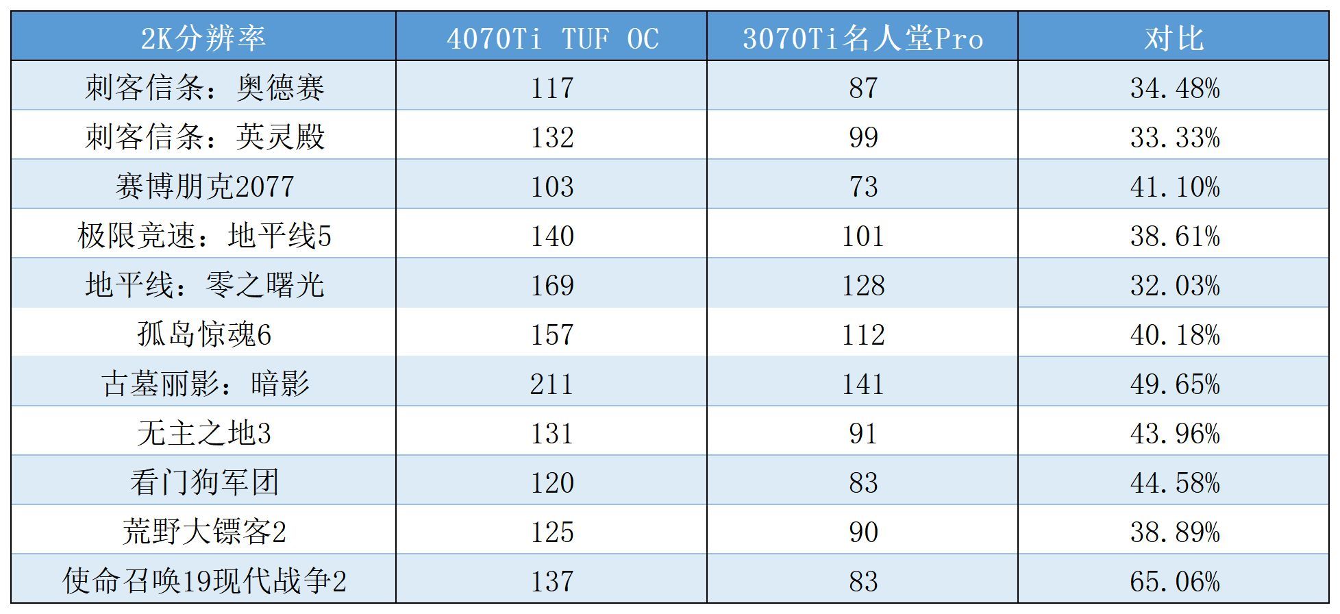 2K分辨率10款3A遊戲的幀數4070Ti平均比3070Ti高39.7%