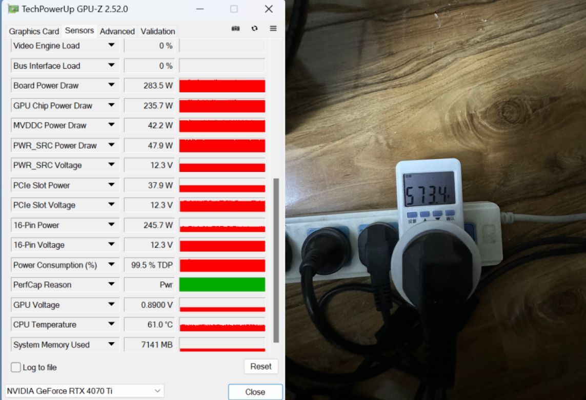 4070Ti TUF OC單烤功耗大概280W出頭,滿載功耗比3070Ti還低,13700K+4070Ti雙烤主機功耗大概575W左右,不得不說4070Ti的功耗還表現還行,650W電源就能帶,保險點750W也足夠了,如果搭配i5 13600K,雙烤功耗還會下降30W左右。