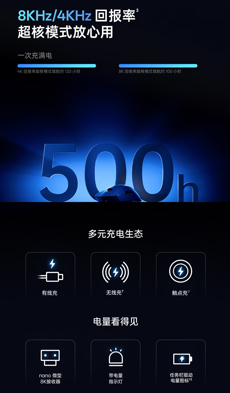 8K Nano接收器,接收器上依旧设计了电量指示灯