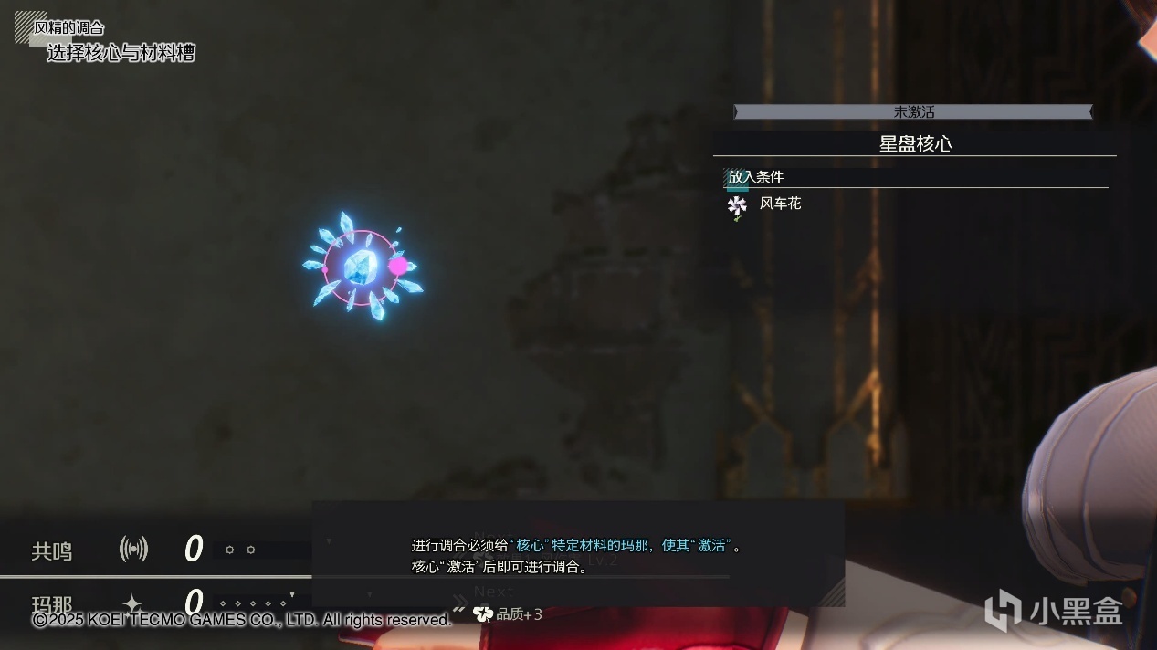 给核心提供特定种类的材料就可以激活核心,进行调和: