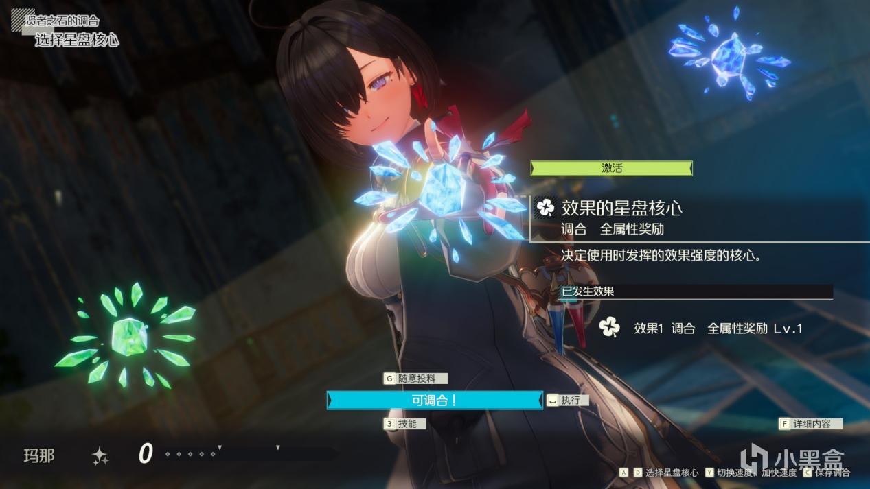 点开调和可以看到多个星盘核心,每一个星盘核心对应的效果不同,有的是增加品质,有的是增加效果等级,有的是增加特性结晶槽: