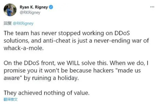 之前《Apex 英雄》就因爲DDos攻擊而導致服務器不穩定,Respawn 公關總監 Ryan Rigney 就在當時針對《Apex英雄》服務器被攻擊一事在社交媒體上表示,團隊一直致力於防禦 DDoS 攻擊,他形容反 DDoS 攻擊是“一場永無止境的打地鼠戰爭”: