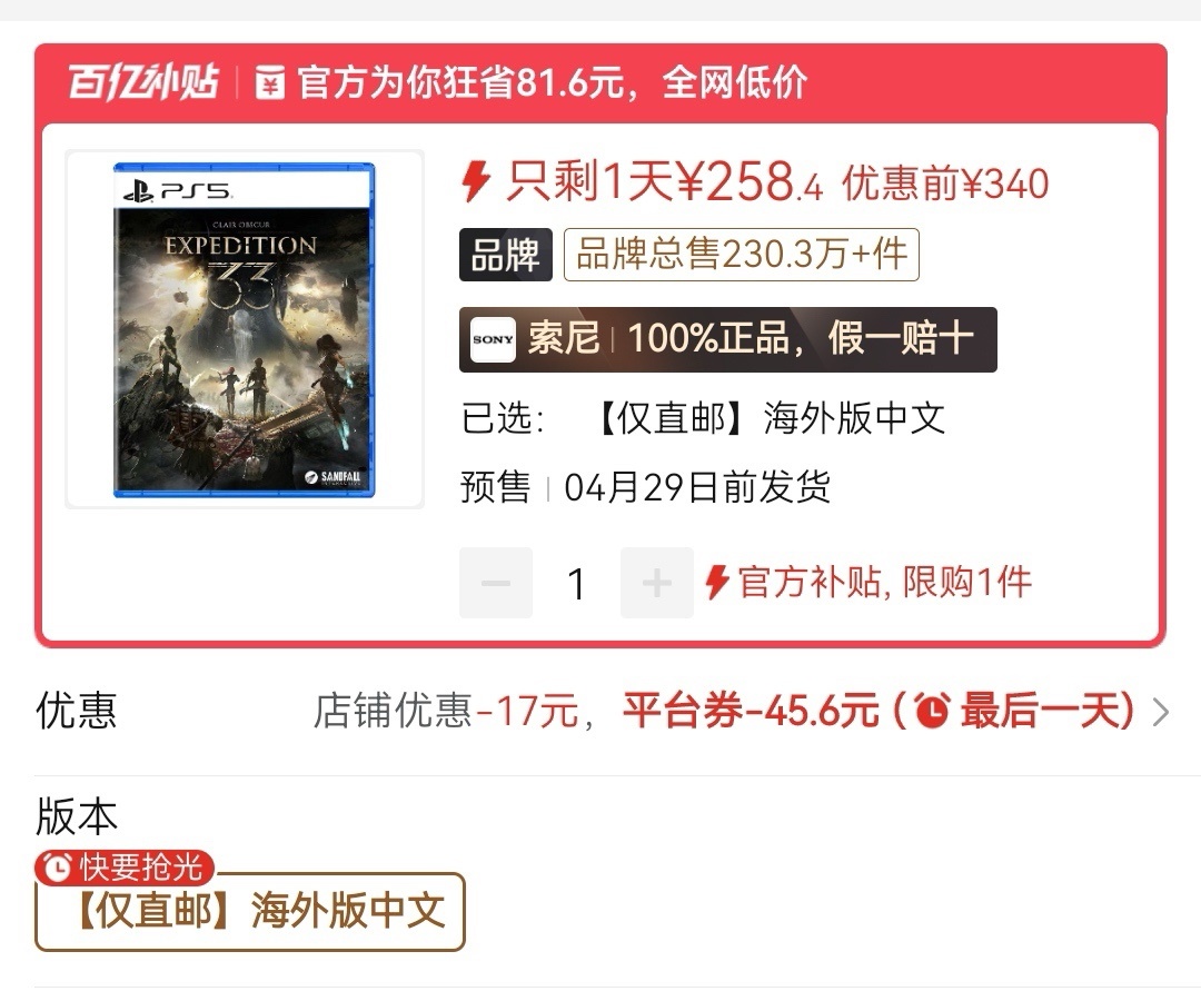 33海外版不需要任何满减券