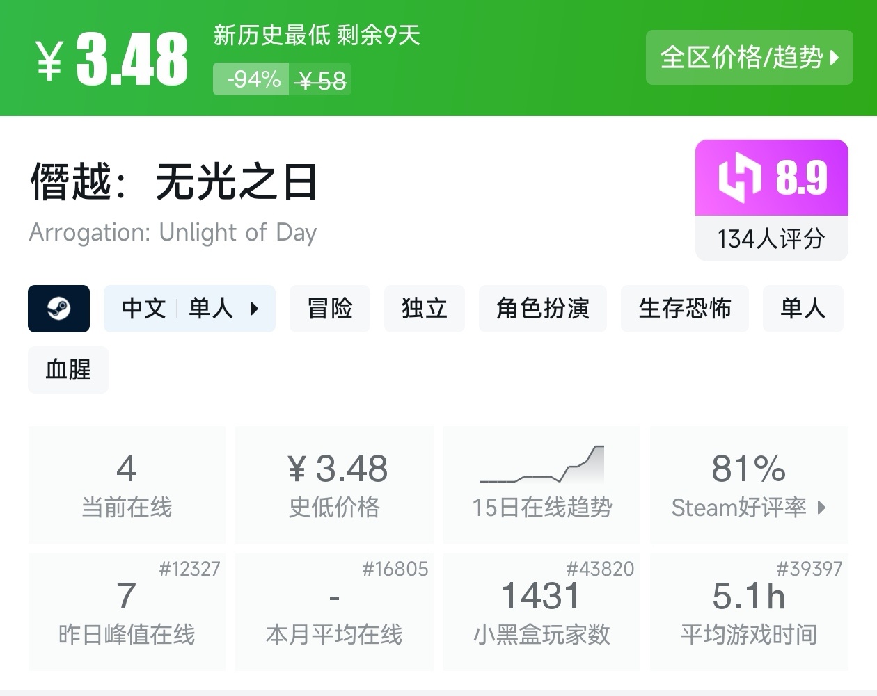 大家好,沒錯,又是我,你們的老朋友亦然,最近Steam很多遊戲都迎來了折扣,當然,還有不少一折的遊戲,很多人其實都喜歡一折,包括我,接下來我將爲各位進行一個彙總,希望我的彙總,能夠幫助各位盒友挑選心儀的遊戲。