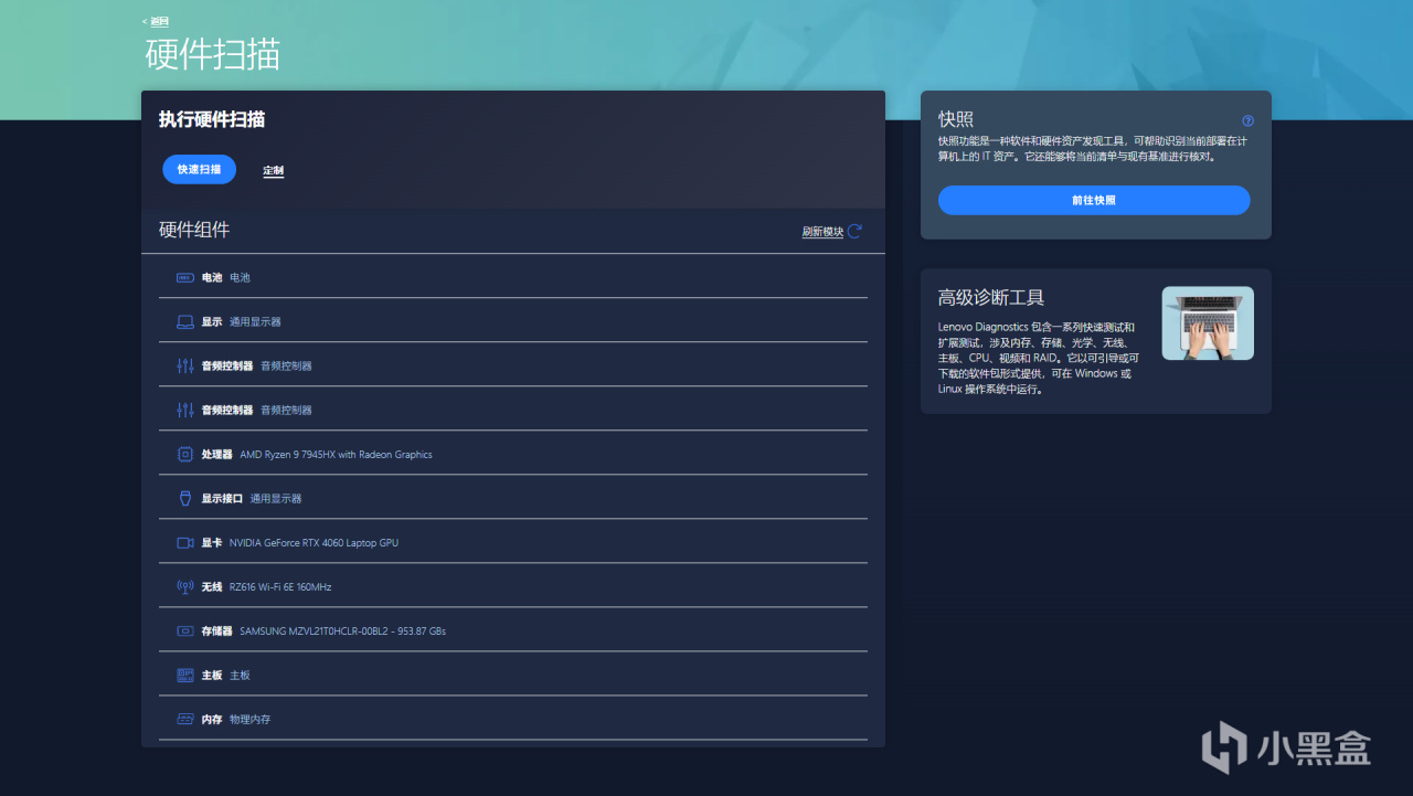 硬件扫描,更像是排查硬件问题,确保硬件没有损坏,在右边还有高级诊断工具可以下载使用,可以进一步确定电脑硬件有没有问题