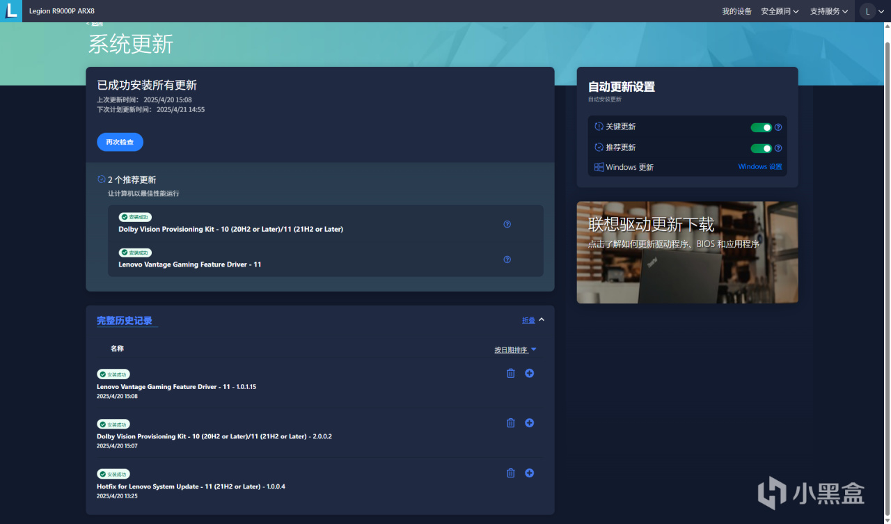 在系统更新页面里可以看到来自联想的驱动更新,可以选择更,也可以选择不更新,看自己选择,