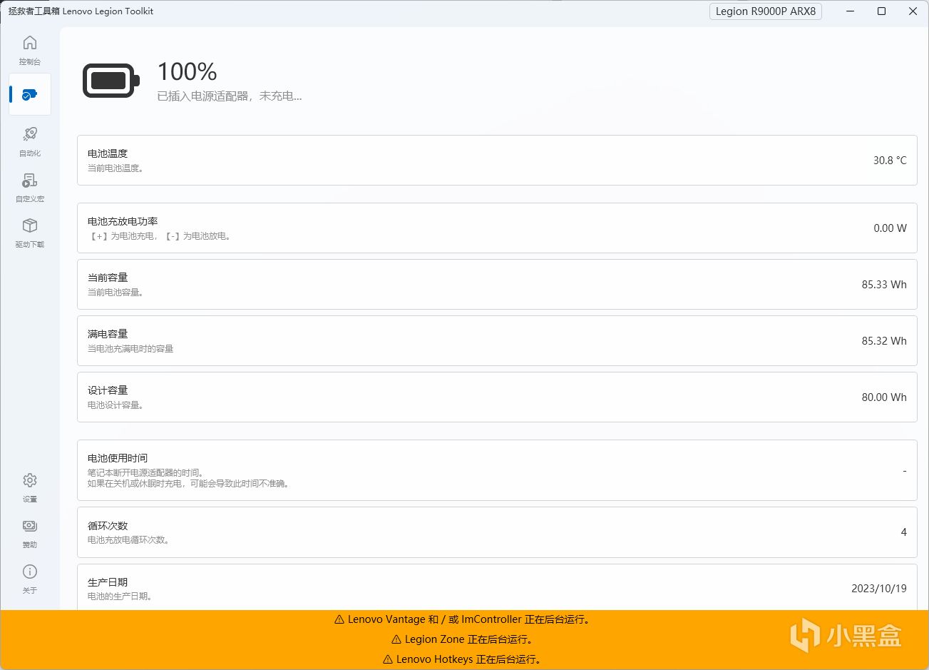 在工具箱里也能跟vantage一样非常清楚的看到电池的当前状况