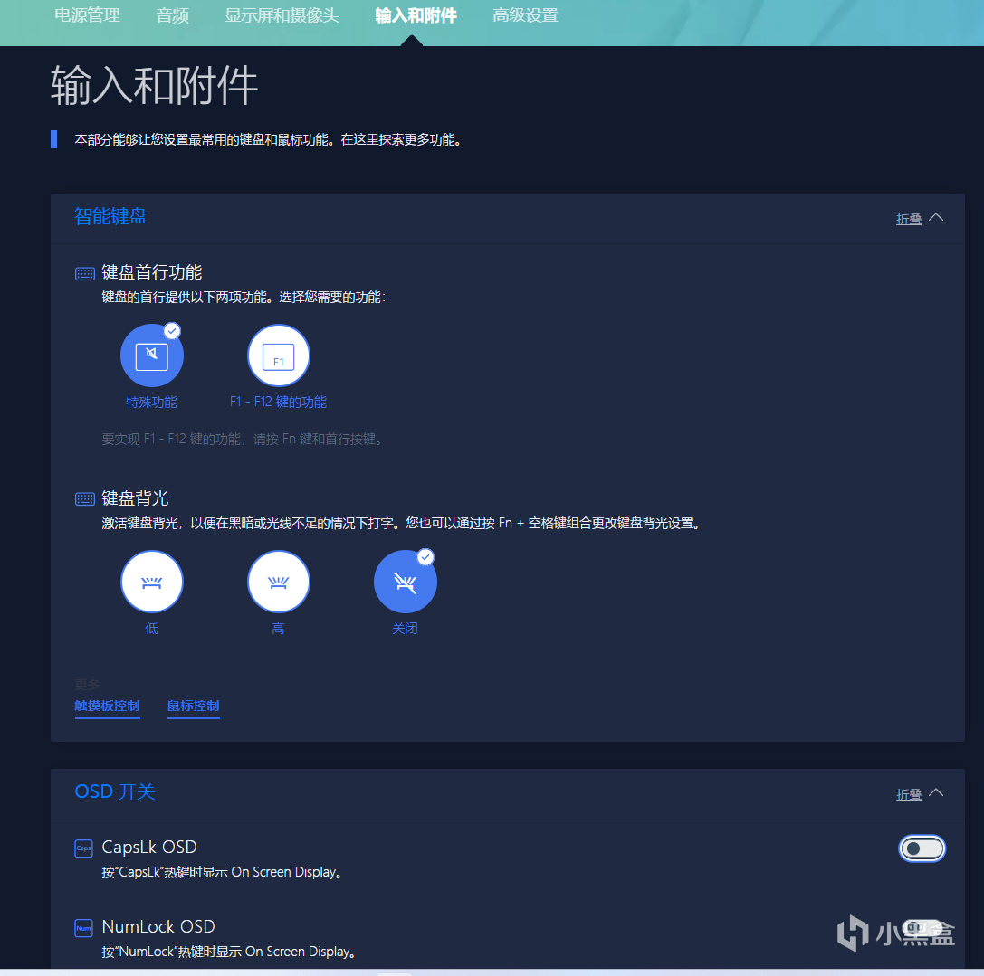 这里可以设置热键锁定和键盘背光,下面的osd开指的是开关大小写和数字键盘的图标显示。