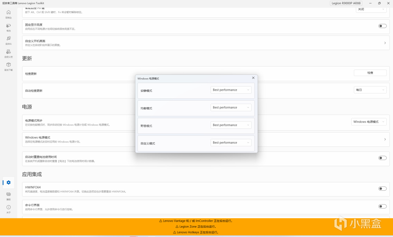 把每个模式对应的电源计划选择正确,到此,工具箱算是介绍完毕了