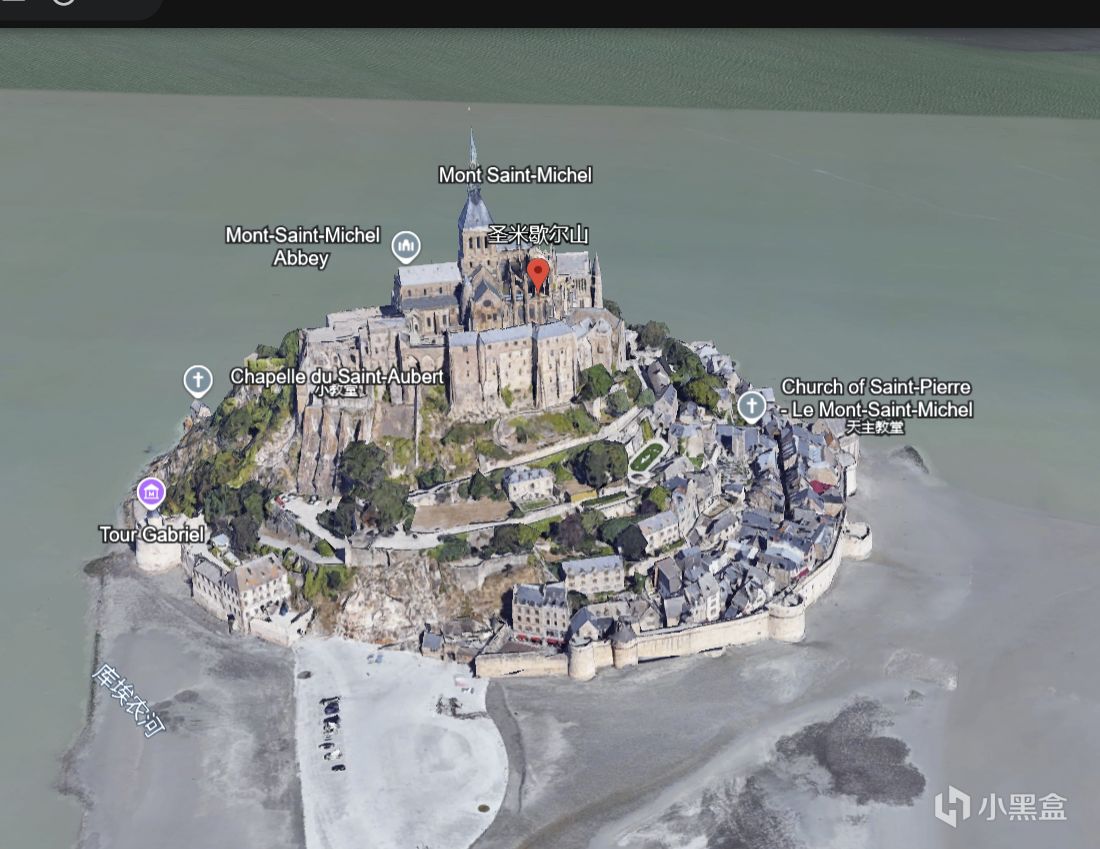 修道院原本建在岛屿的顶部,随着潮汐的变化,岛屿与陆地的连接有时会被淹没,形成独特的潮汐景观。岛屿的建设历时几个世纪,期间经历了多次战争和修建改造,成为法国中世纪建筑的代表之一。
