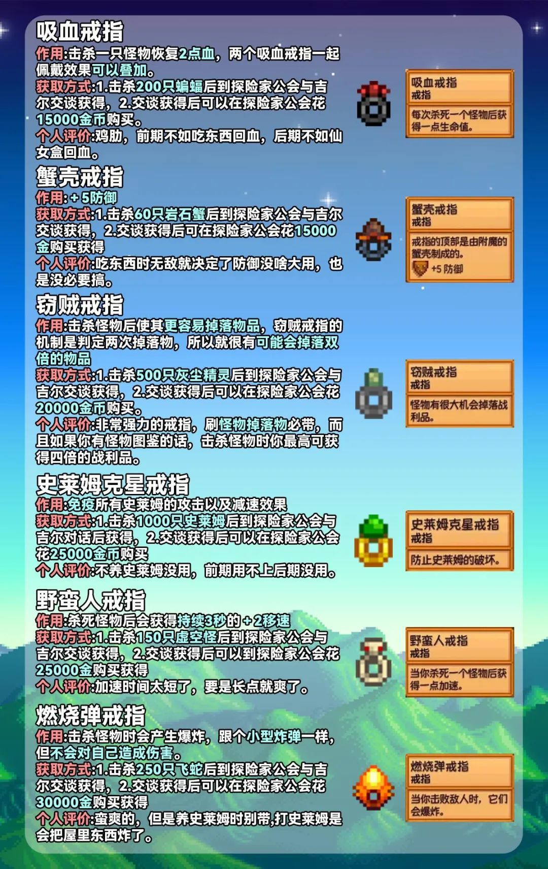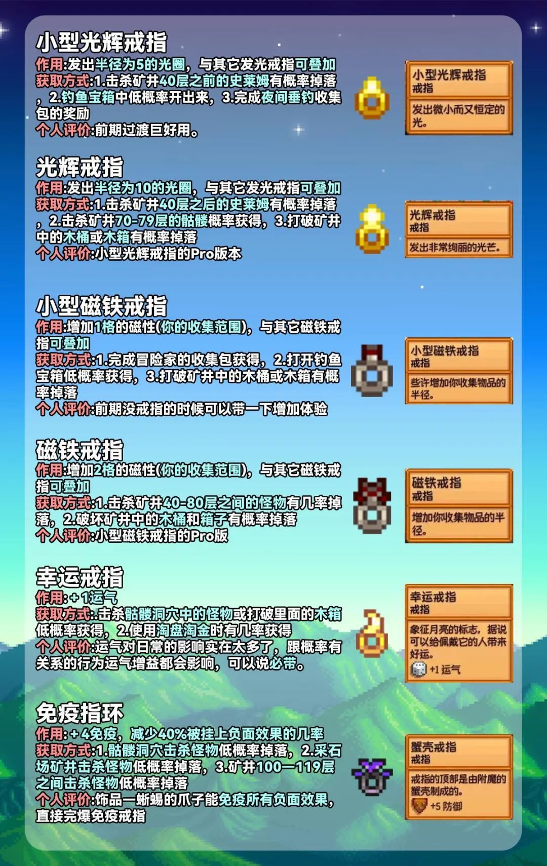 基於我個人遊玩經驗,總結了星露谷全部戒指,每個人遊玩進度和過程不同,可能會有不同意見,所以我每個戒指個人評價大夥當個參考就行了,還是按自己喜歡需求來。