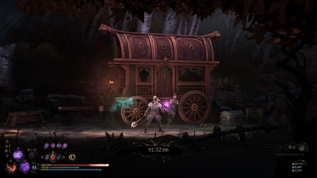 而好在各類風格各異的技能補救了這一點,不同的職業亦有不同的技能,隨着地圖的探索和遊戲的進程將不斷解鎖。而作爲咒術師,我很中意於法術波和火花這兩個技能,配合起來後期的傷害爆炸(前中期用的則是光波和骰子,骰子搖到紅色的傷害也很爆炸)。