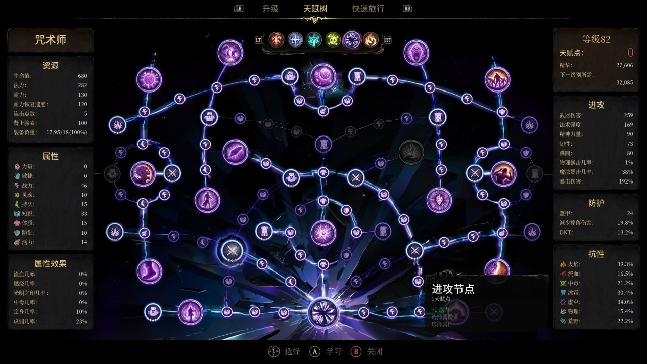 另外,玩家可通過橫向連接的天賦板塊跨職業發展(例如咒術師可延伸至編火者或夜影),理論上可以實現多職業共存的盛況,我也嘗試了一下能不能做一個重坦的法師或刺客法師,但是最終失敗了,因爲天賦點實在是太少了,如果兩個天賦樹一起發展的話天賦點會嚴重不足,甚至影響了咒術師本身的構築。