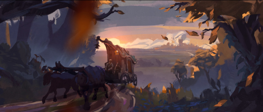 當第一縷晨光如熔金般從城堡尖頂傾瀉而下,疾馳的馬車彷彿被神祇加冕,輪轂捲起的光塵在晨霧中折射出細碎虹霓。而當月夜降臨,破敗城堡的裂縫間漏下的月光化作銀箭,刺破濃霧籠罩的黑暗,共同見證者黑暗的往事....