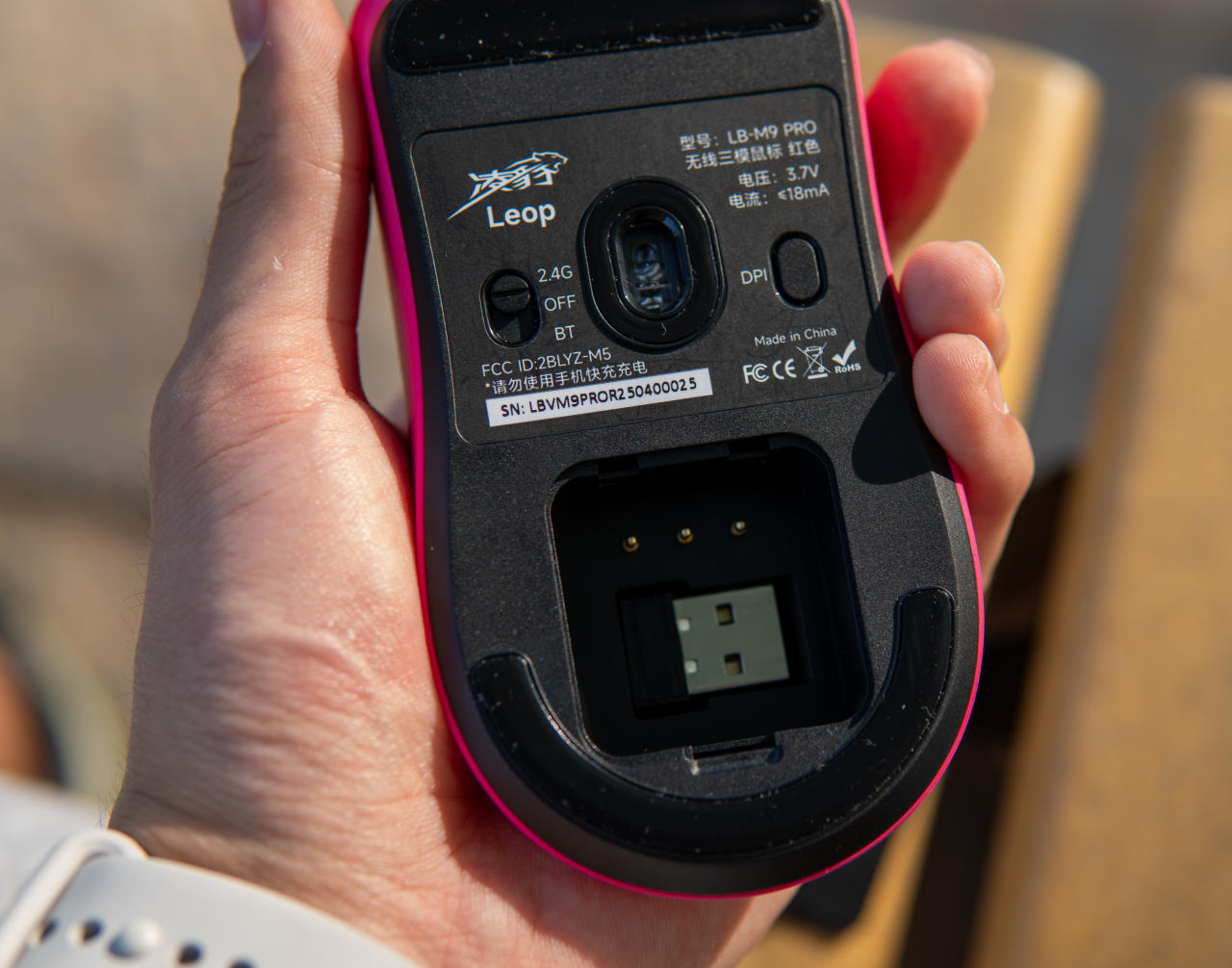 可拆卸電池,只需把鼠標底下的收納倉打開,就能直接取出