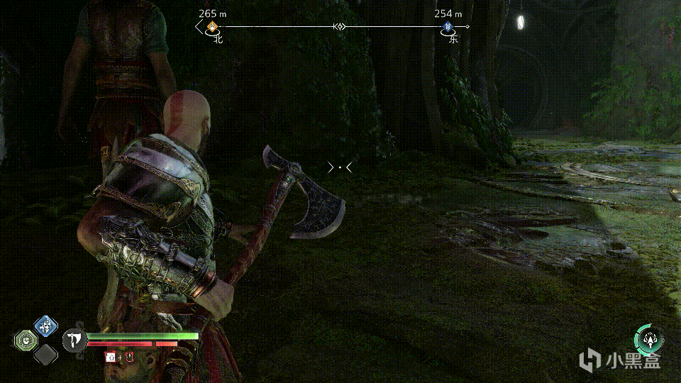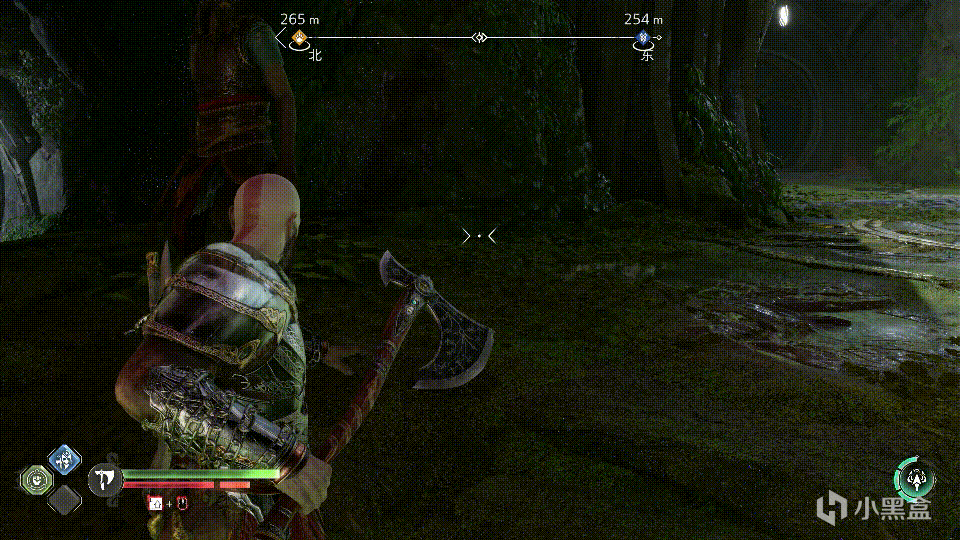 第三款遊戲也是索尼第一方的《戰神:諸神黃昏》,從對比場景來看,屬於同樣的偏左越肩視角,玩家日常聚焦會更偏右邊畫面。