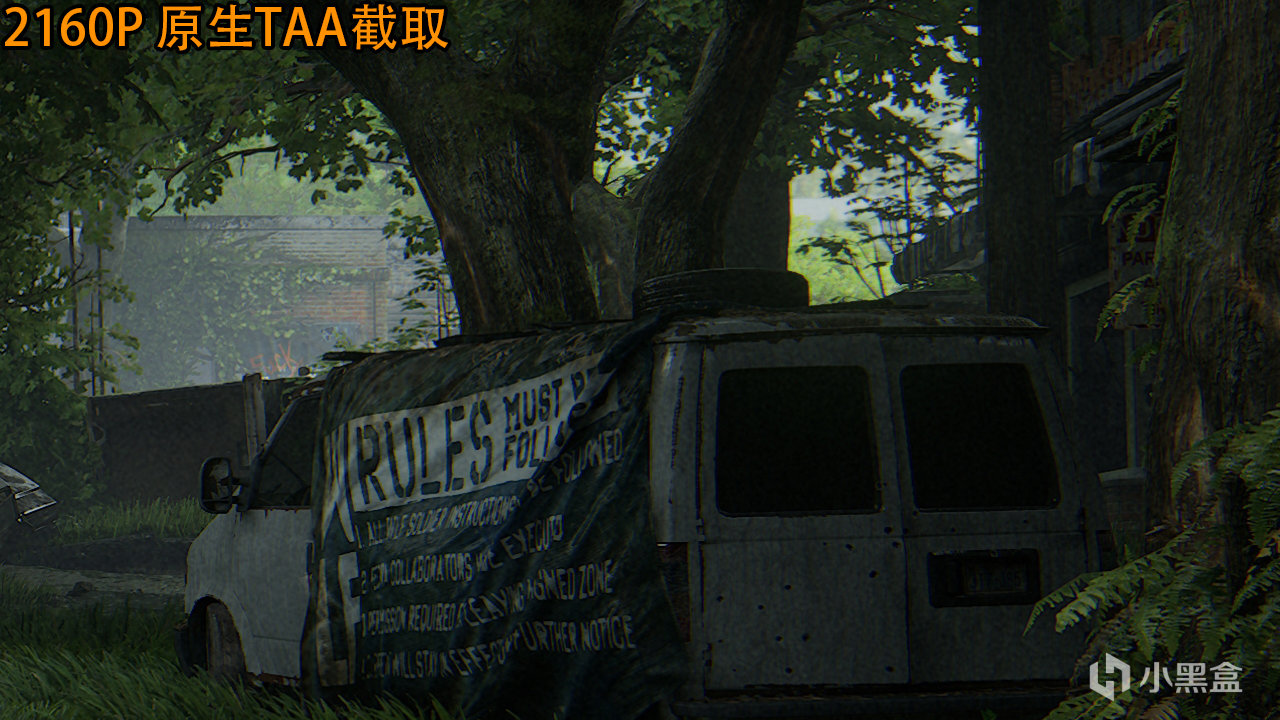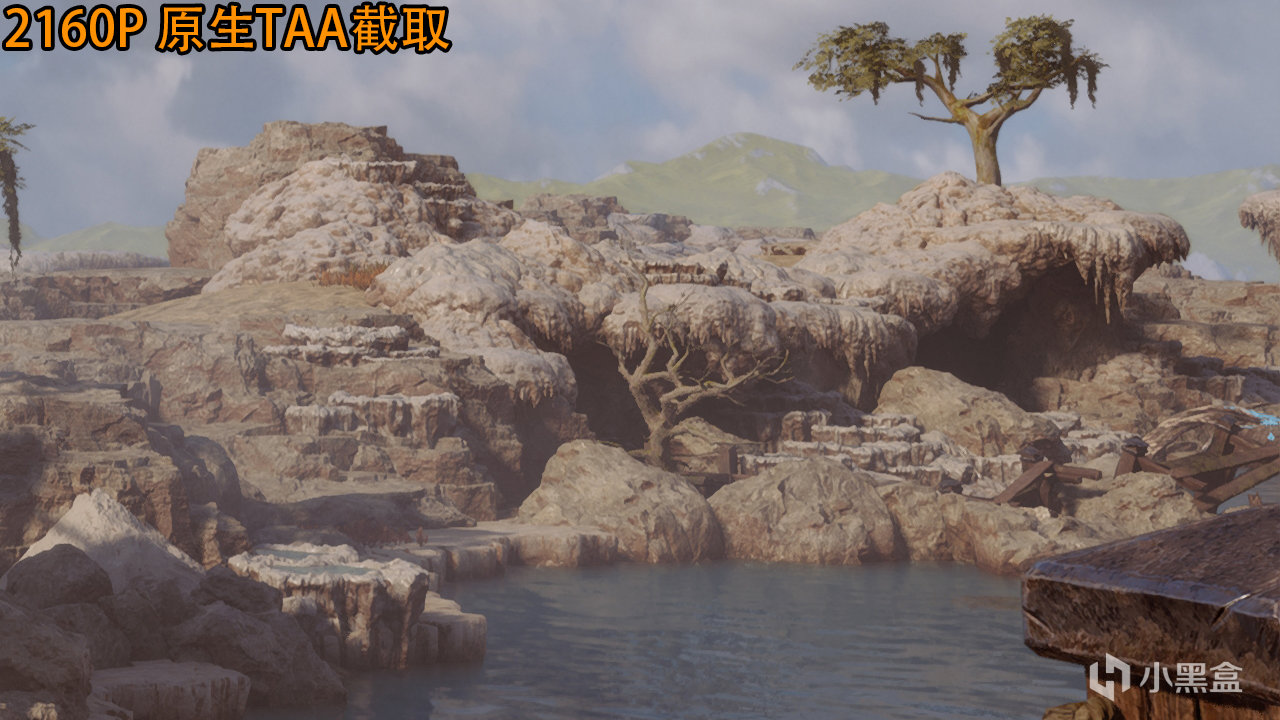 邊緣的畫質以上四組對比下來差距就沒那麼大了,非要揪出來的說唯有最右上角的樹葉,用TAA來渲染稍微模糊了一點點,其他三者畫質都差不多,不過對於這款遊戲來說,清晰的視野不是特別需要擴展到這麼邊緣部分。