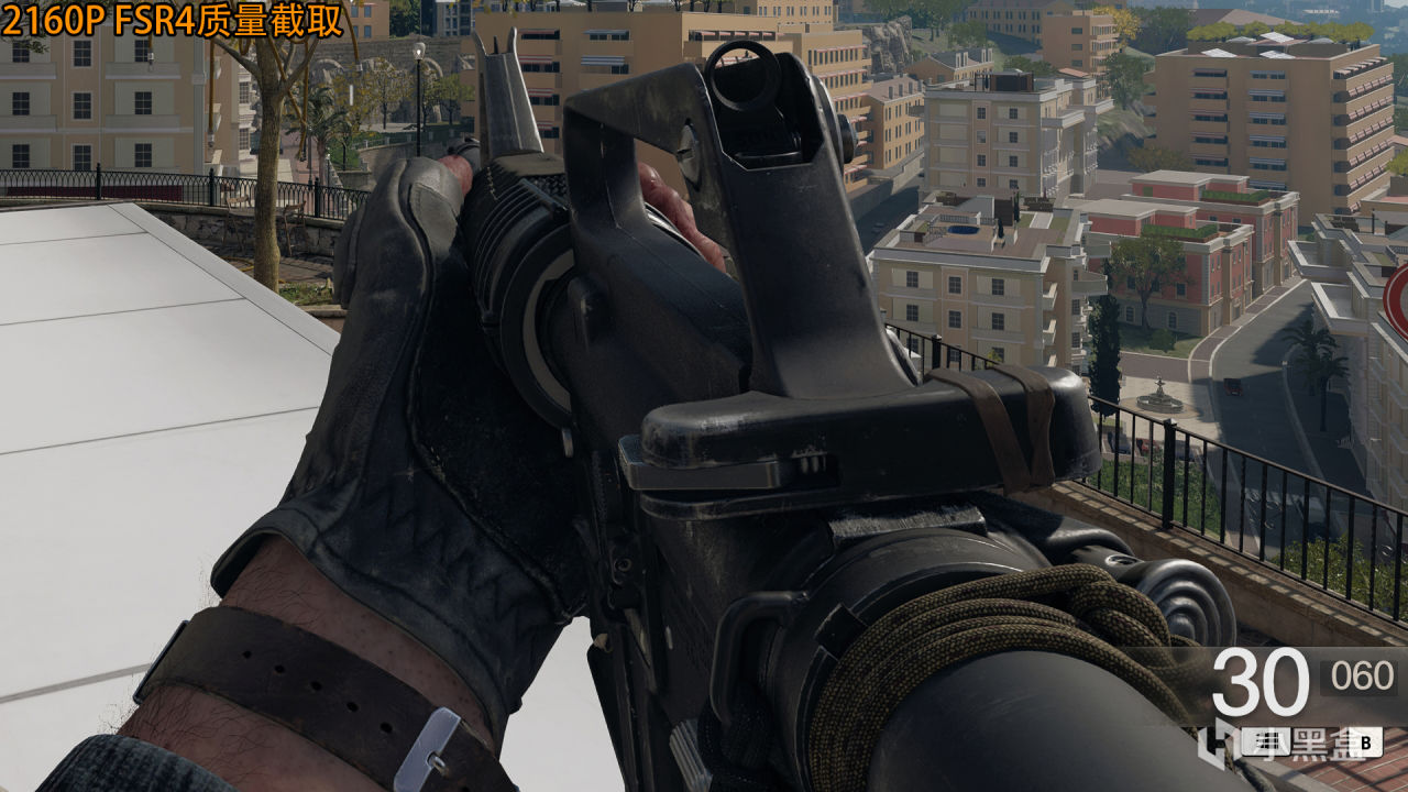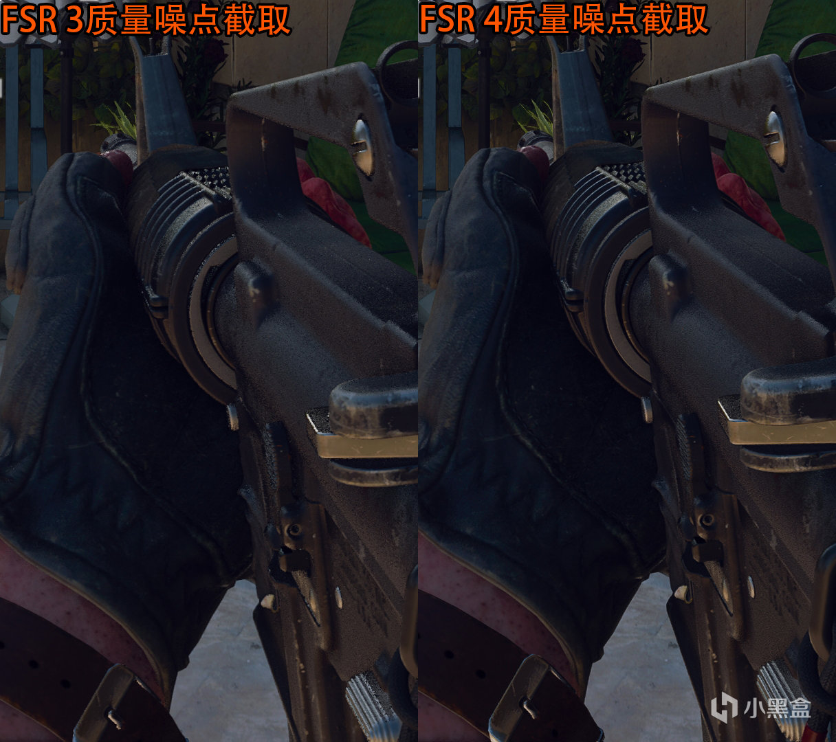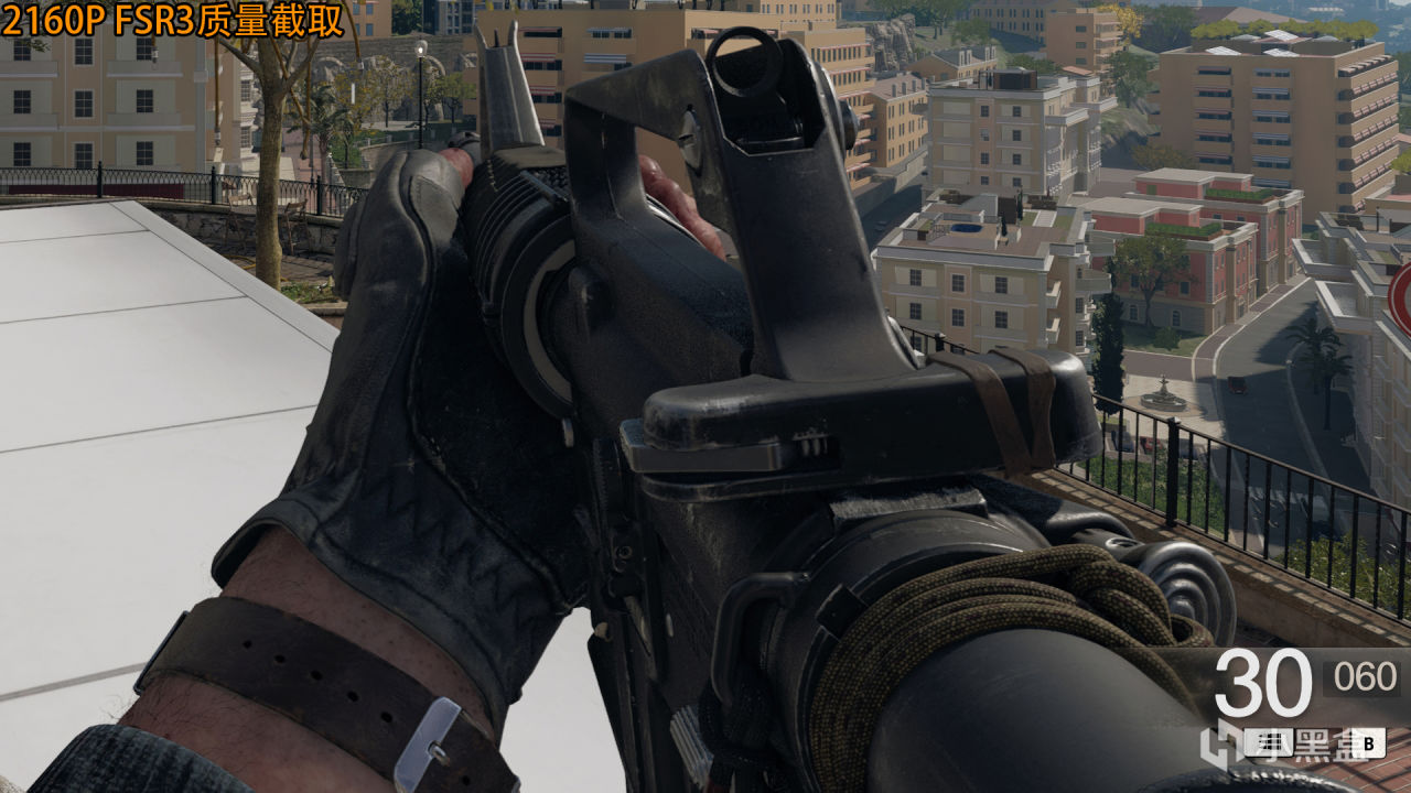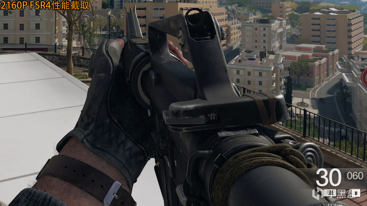 接下來是《使命召喚21:黑色行動6》的對比場景,這是一款RX 9070 XT/9070首發就支持FSR 4的遊戲,COD顯然是偏向電競類型,玩家除了中間的武器準星,其他部分也會多注意,比較講究全局畫質好壞而並非一個區域。