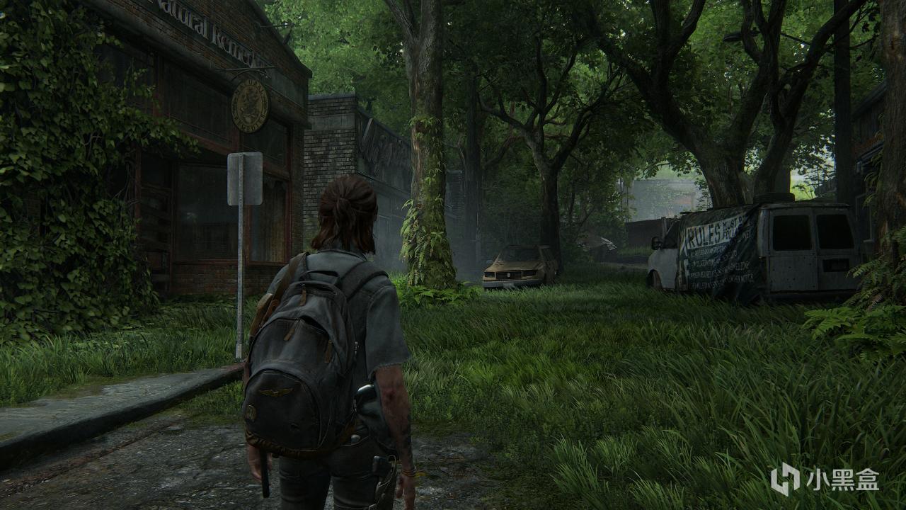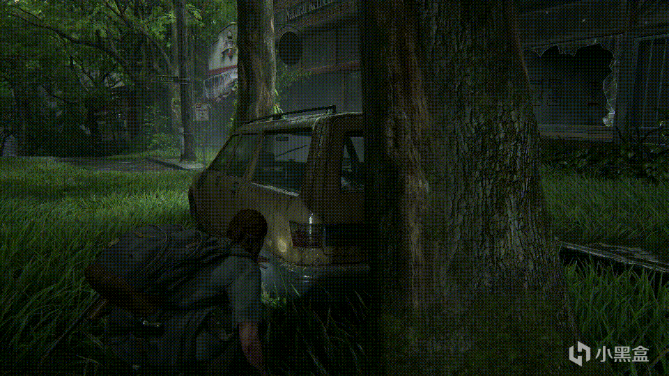 《最後的生還者2:重製版》對比場景,主視角是偏左的,以人物作爲分割線,右邊展示的畫面會更多,索尼大多數線性敘事遊戲都是這種越肩風格,因此一般情況下玩家視野也會更留意靠右區域(包括武器開鏡),以下的截取對比也是依照這個準則。