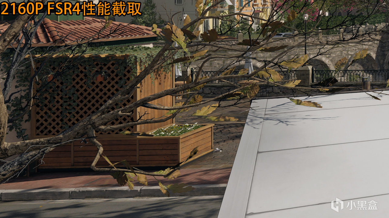 邊緣部分,在這款遊戲中最容易體現差別的是那些線狀物體,比如對面河堤的柵欄,從精細度來看,是FSR 4質量>FSR 4性能>原生>FSR 3質量,在實戰中對於那些天生具備“8倍鏡”的高玩來說,顯然更容易鎖定遠處的敵人。