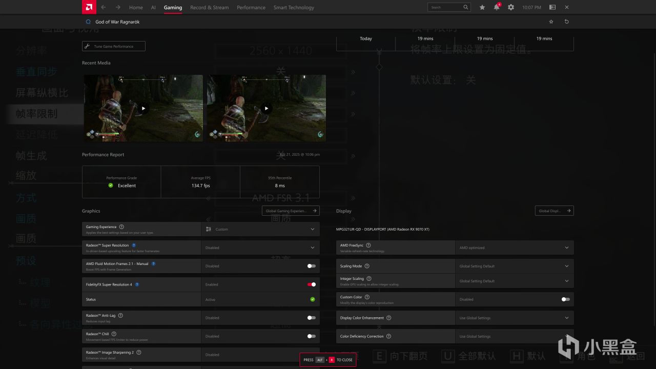 《戰神:諸神黃昏》相關選項,打開顯卡驅動開關後遊戲內依舊顯示FSR 3.1,實際已經是替換掉了。
