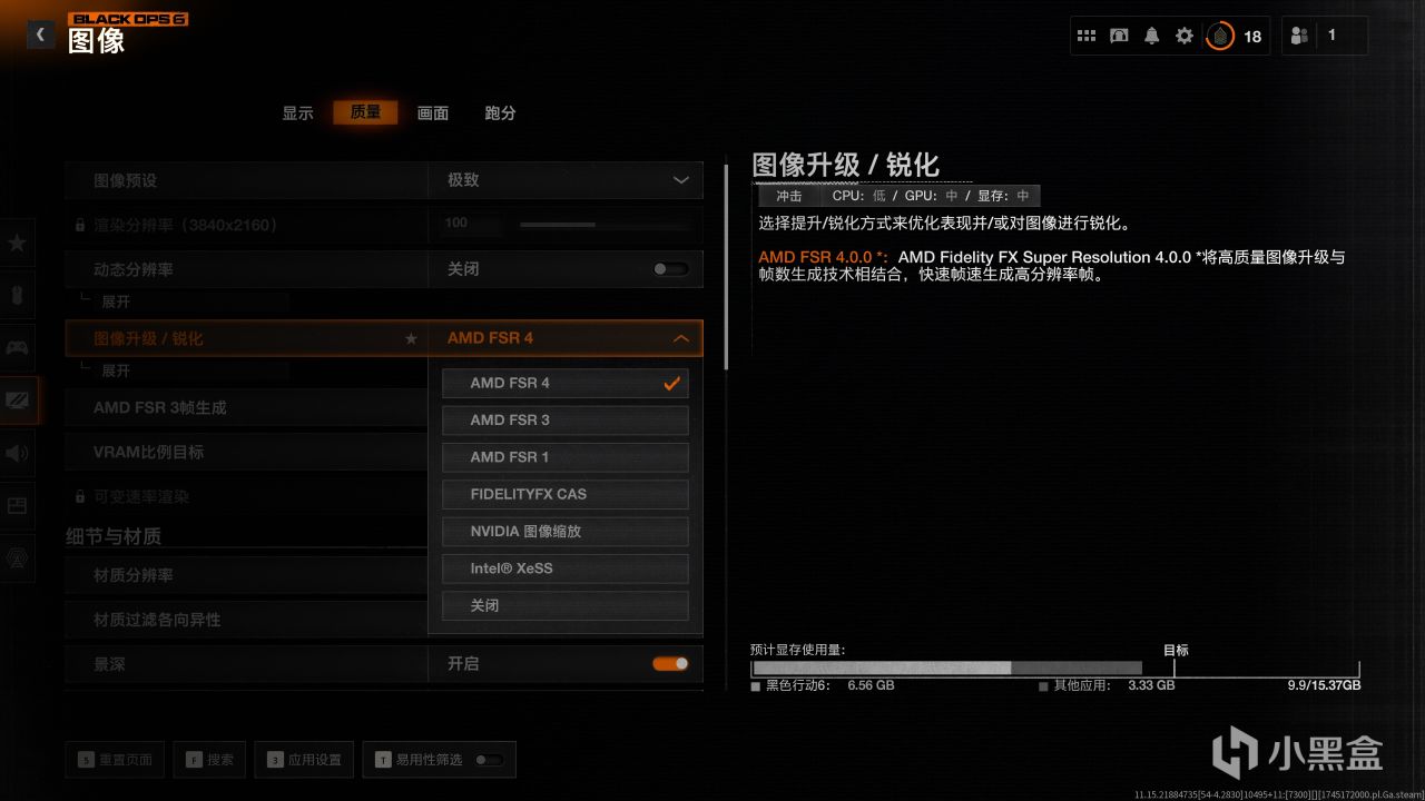 《使命召喚21:黑色行動6》相關選項,打開顯卡驅動開關後即可顯示FSR 4,和FSR 3.1共存的,給玩家留有更多的升頻方案選擇~