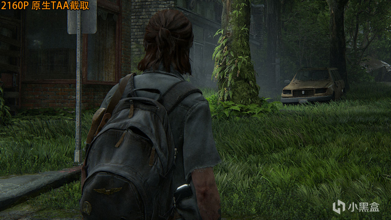 在《最後的生還者2:重製版》這款遊戲裏,TAA原生抗拒齒本身調教就不錯,整體觀感銳度適中,不過從這四組近景截圖,TAA對於毛髮這種複雜幾何邊緣處理明顯不到位——違和的毛刺感,就連FSR 3.1都要好於TAA,最新FSR 4甚至已經達到可呈現髮絲的細膩,只不過性能檔邊緣處理略差一點。