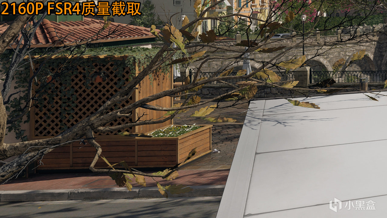 閃爍問題大多數出現在可反射的物體上,比如金屬面、水面等等,像以上反射的小水坑,FSR 3就無法處理這種閃爍,只能換個角度纔會消失,主動讓屏幕空間反射效果失效,而升級到FSR 4後就能穩定解決,值得一提的是,這種閃爍問題在光追遊戲裏尤其多發,所以FSR 4對於光追性能大增的RX 9000系列顯卡就是必不可少的技術。