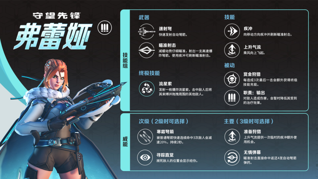 全新輸出英雄正式參戰!弗蕾婭已蓄勢待發。友情提示——面對目標,她從不失手。弗蕾婭手持速射弩,配備高機動性技能組,用精準打擊、精妙走位與狩獵本能詮釋何爲致命獵手。
