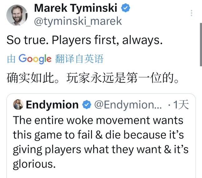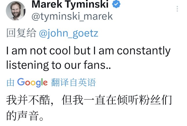 CEO力挺与社区互动:CEO Marek Tyminski转发玩家评论并表态“玩家至上,永远”,强化了品牌与玩家之间的信任关系,进一步推动社区活跃度。