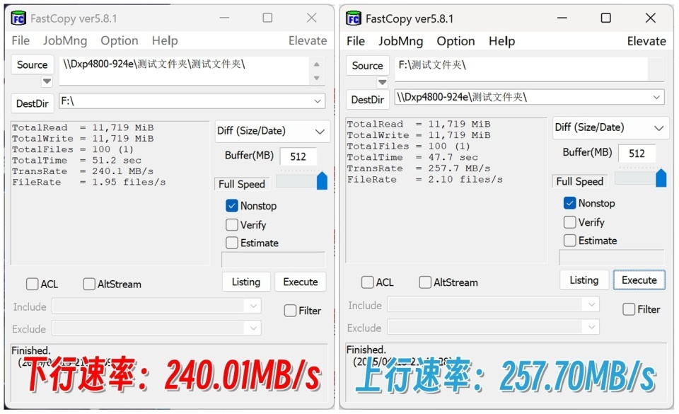 「NAS➡️電腦」:耗時 51.2 秒,平均速率 240.01MB/s