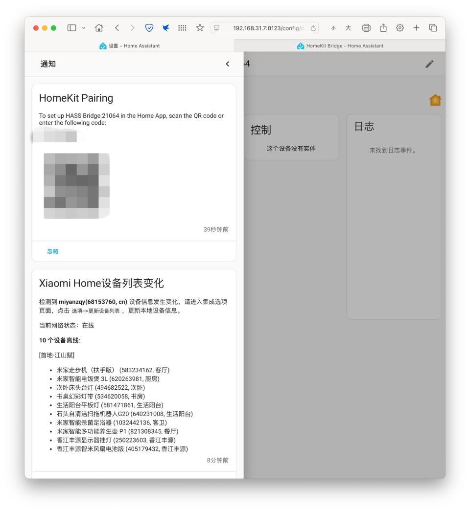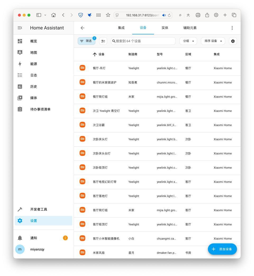 可以看到我家 64 個智能家庭設備都被完整的集成到了 HA 列表中,接下來我們就要把它們鏈接到蘋果家庭中。