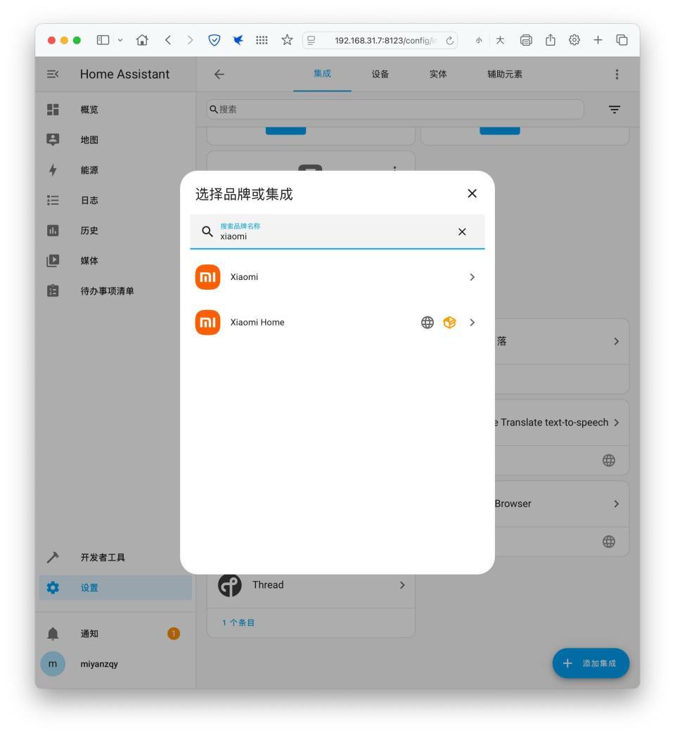去年底小米官方在 GitHub 上正式發佈了 HA(Home Assistant)米家官方集成 (Integration),這樣就可以把米家生態中的更多設備接入蘋果智能家庭了。我們可以在 HA 的「設置」➡️「設備與服務」➡️「添加集成(頁面右下角)」中搜索“xiaomi Home”。