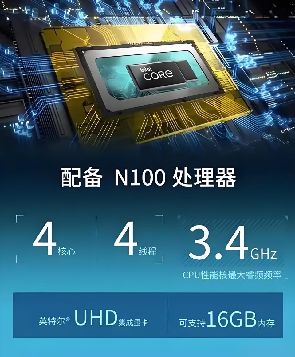 「處理器」:英特爾® 酷睿® N100( 4 核 4 線程 / 0.8-3.4GHz)