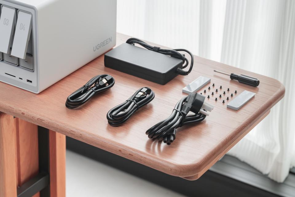 在配件方面,綠聯 DXP4800 提供了一個電源適配器、兩根六類網線,不過比較遺憾的是配件依舊爲黑色系,要是全套白色或者灰色那就真是封神了。