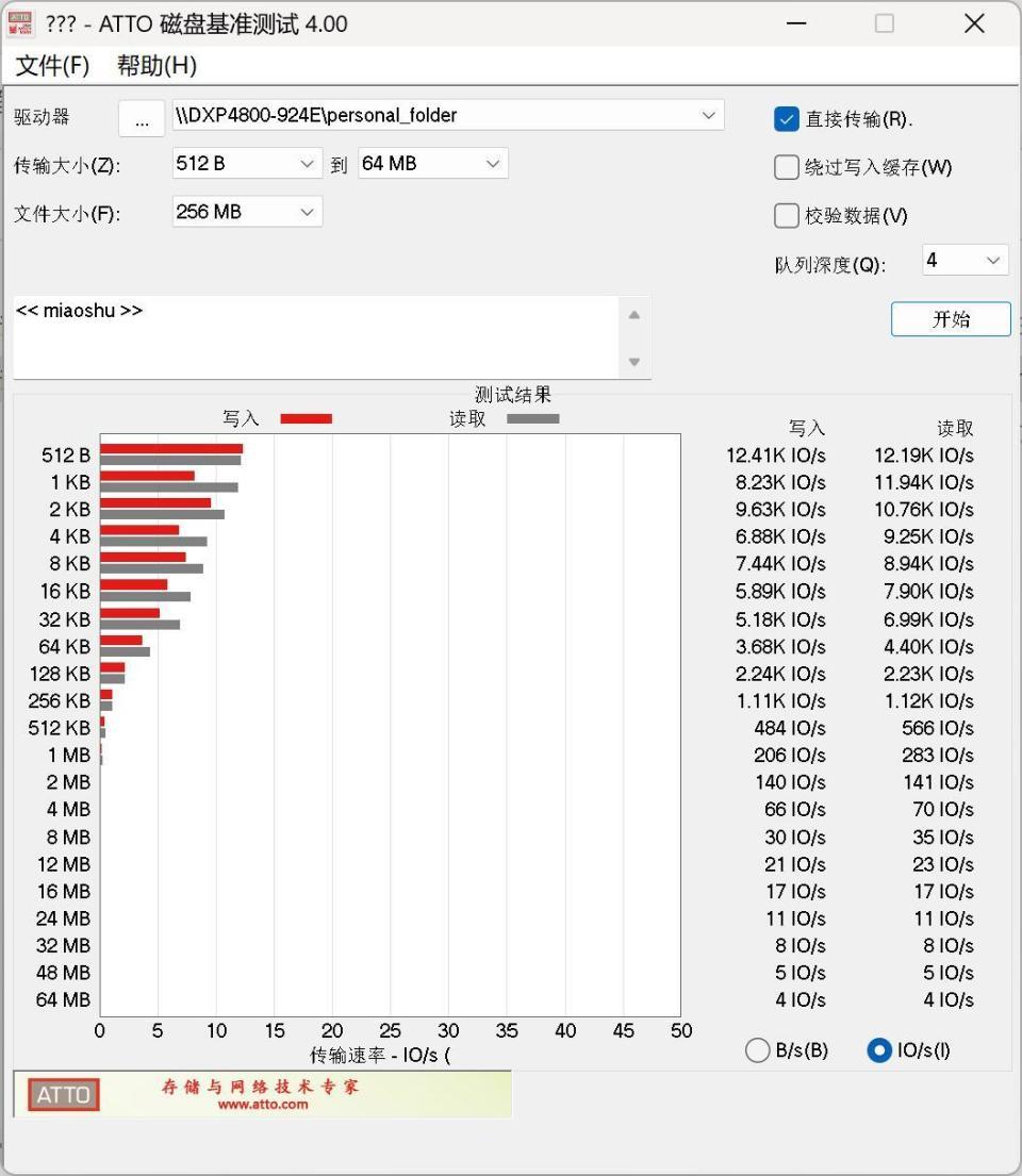 隨機讀寫方面,隨機寫入次數峯值 12.41K IOPS,隨機讀取次數峯值 12.19K IOPS。